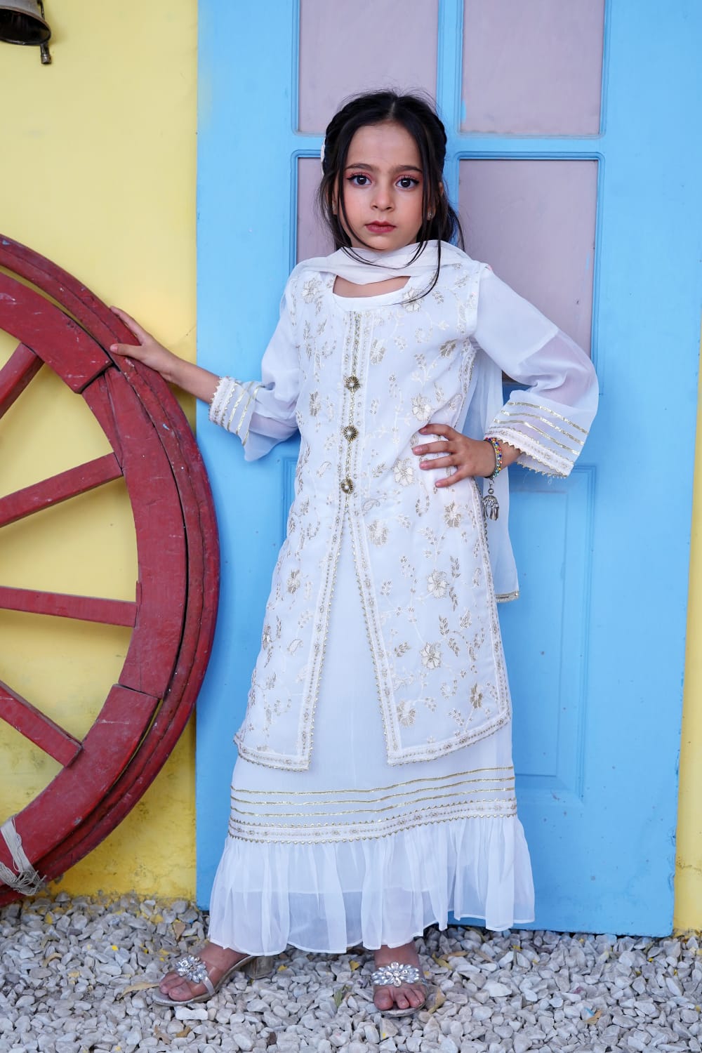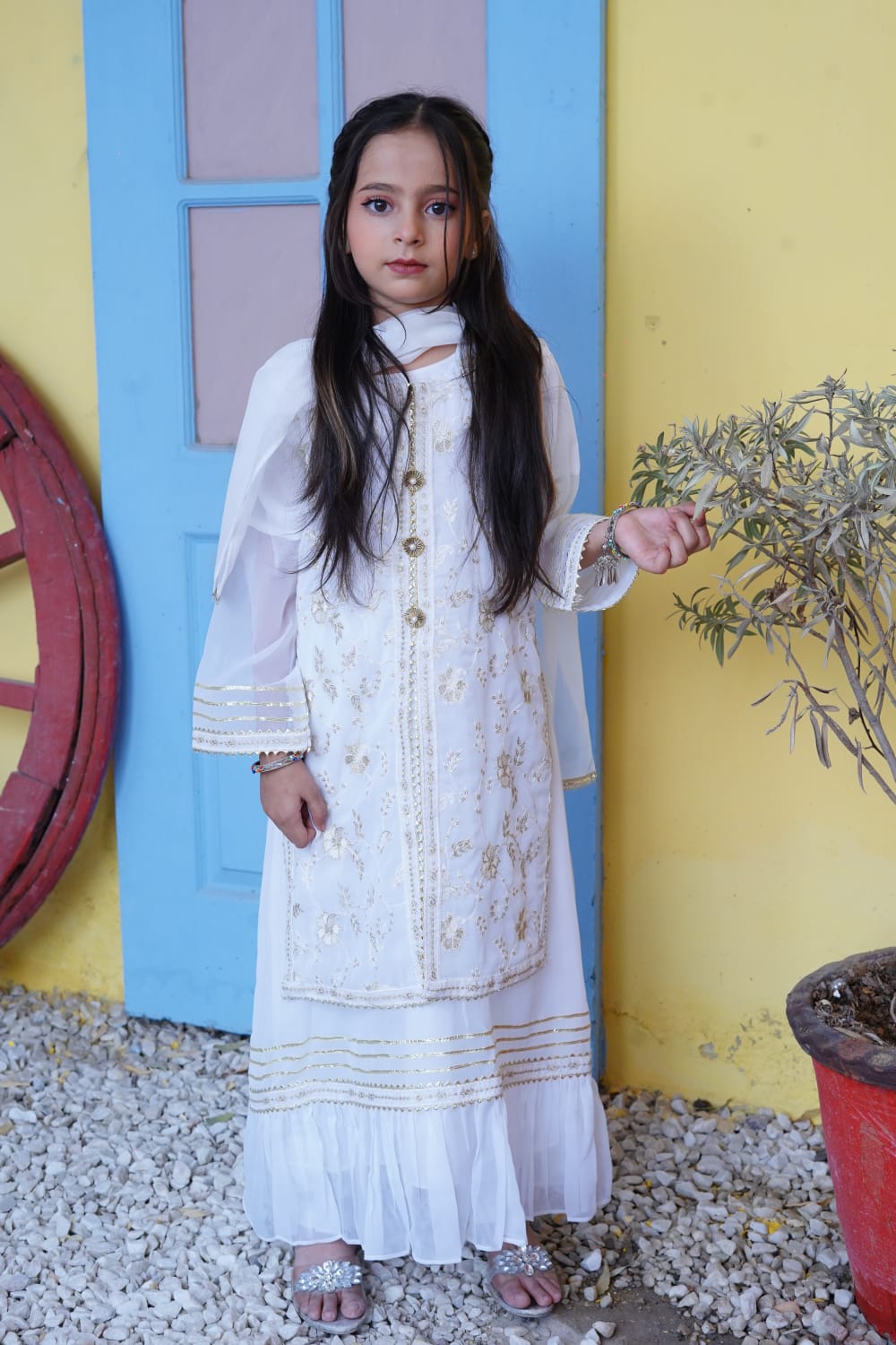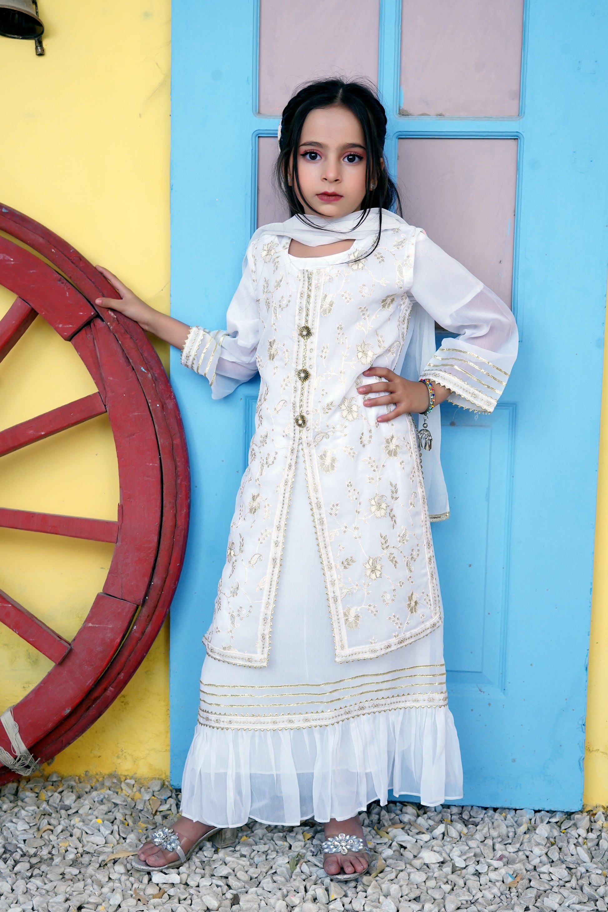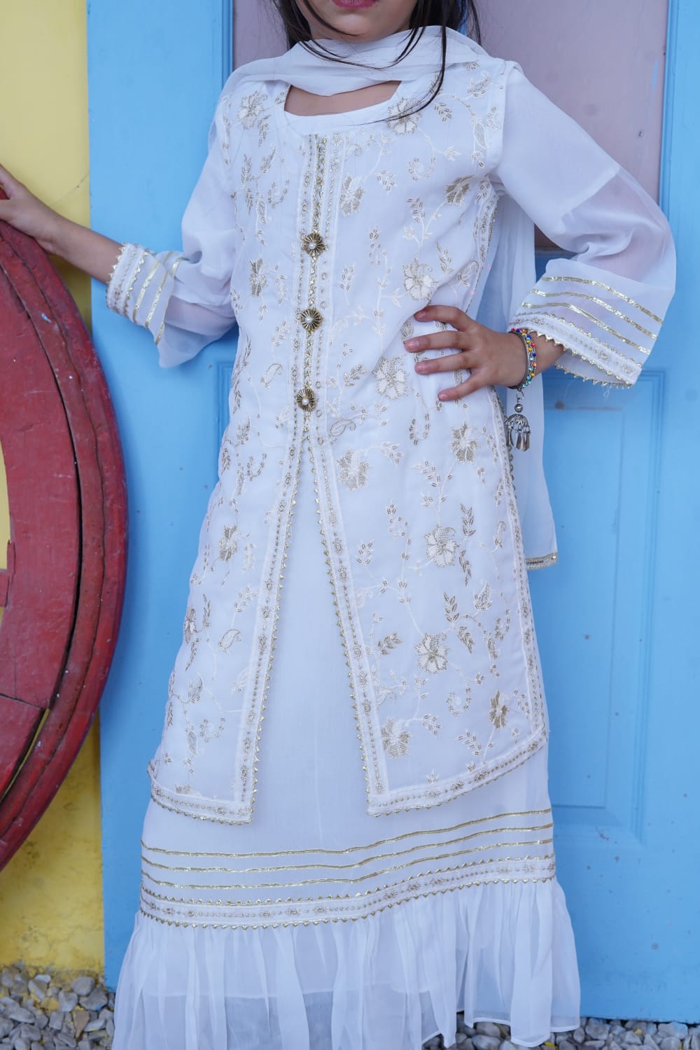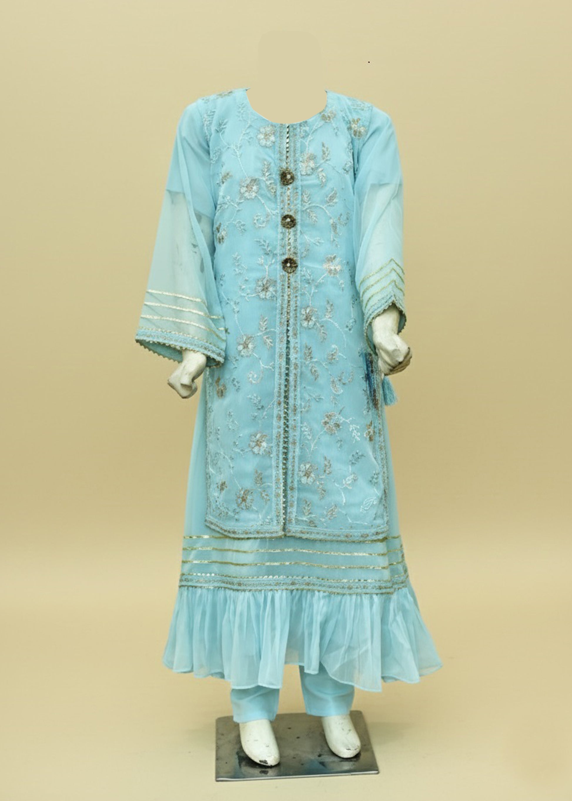 Color: Off White & Ferozi
