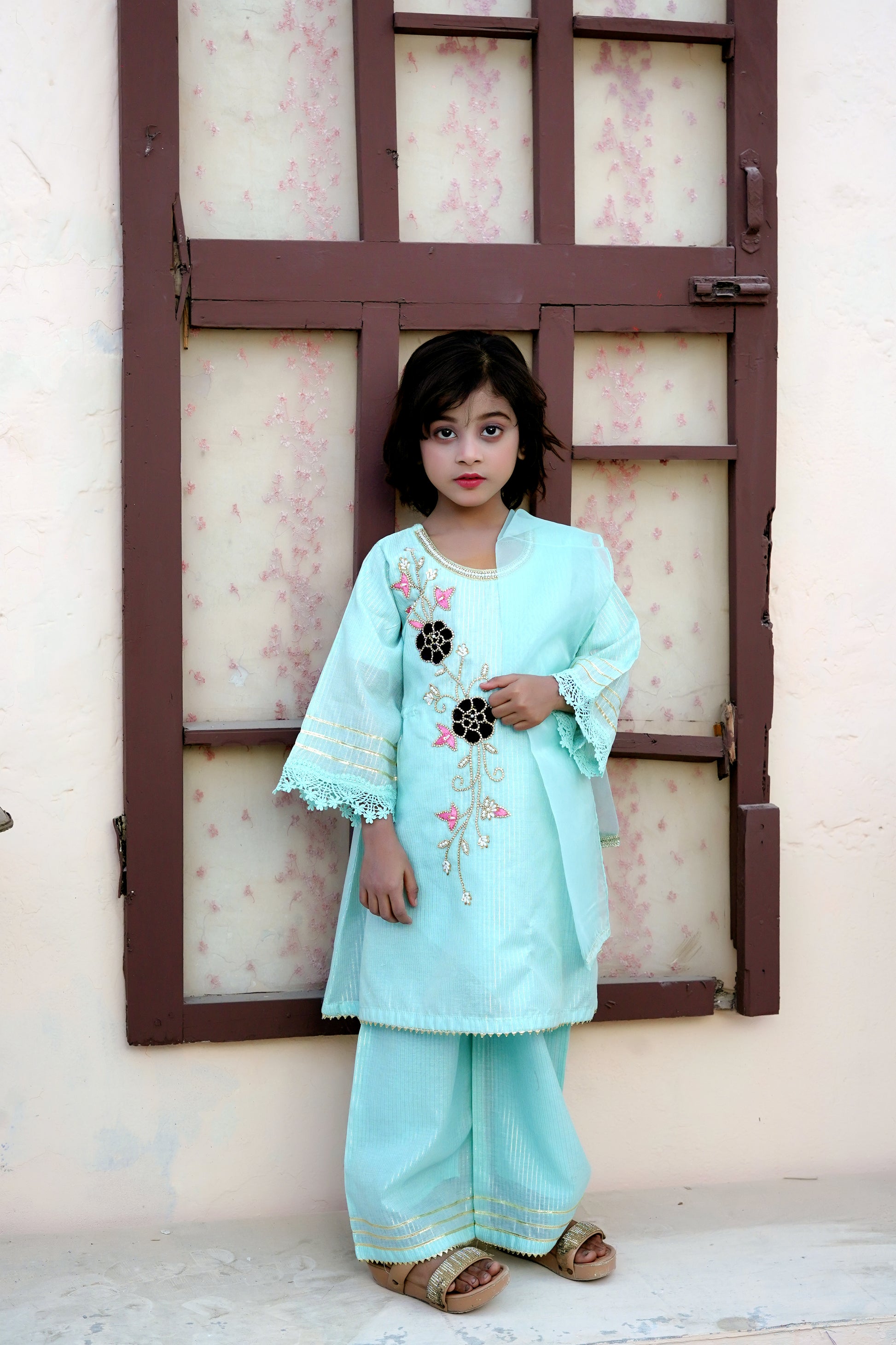 Color: Light Ferozi & Cream